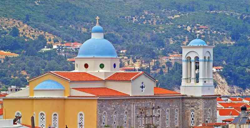The oldest Byzantine church on the island is located on the way to the Potami Waterfalls. It is from the 1000s and the architecture combines the two styles of Byzantine and Genoese with its cruciform plan and dome.